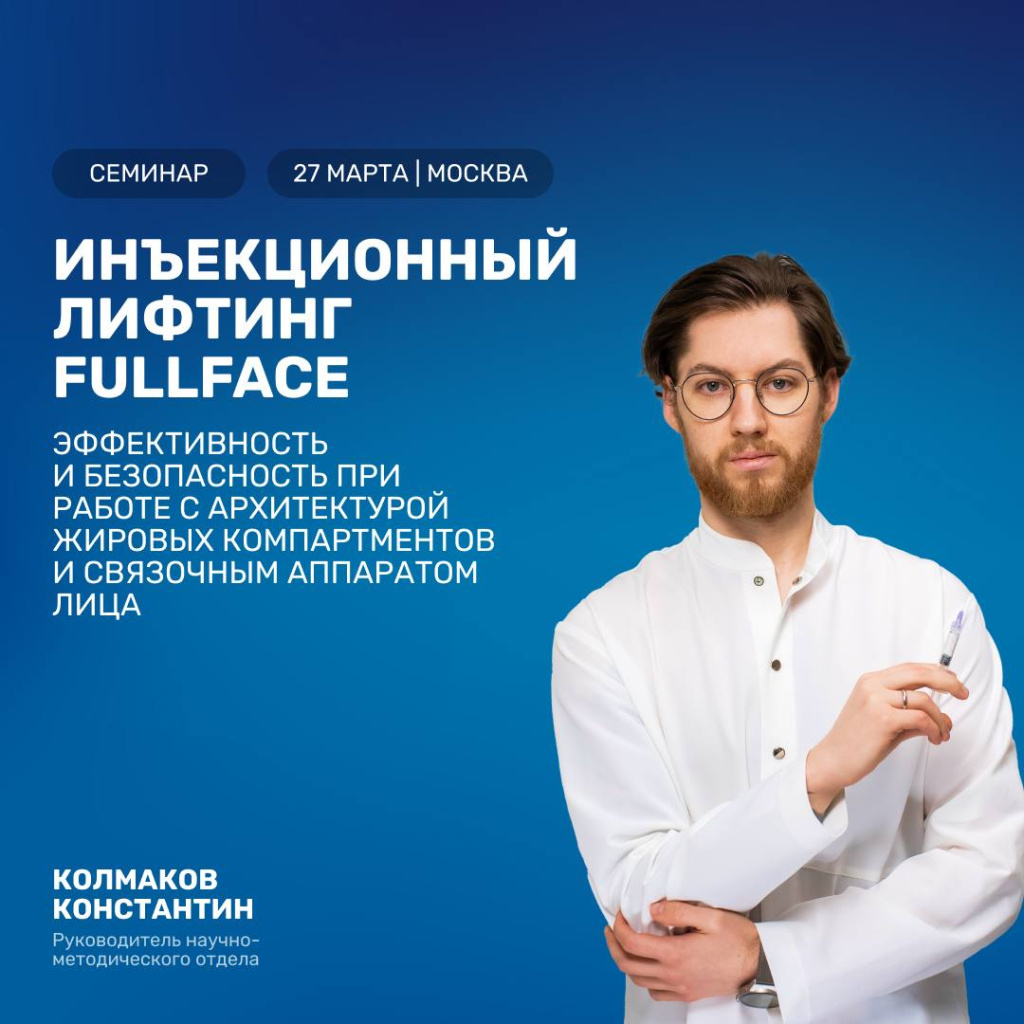 Приглашаем вас на однодневное обучение «Инъекционный лифтинг FullFace. Эффективность и безопасность при работе с архитектурой жировых компартментов и связочным аппаратом лица», которое состоится 27 марта в Москве.