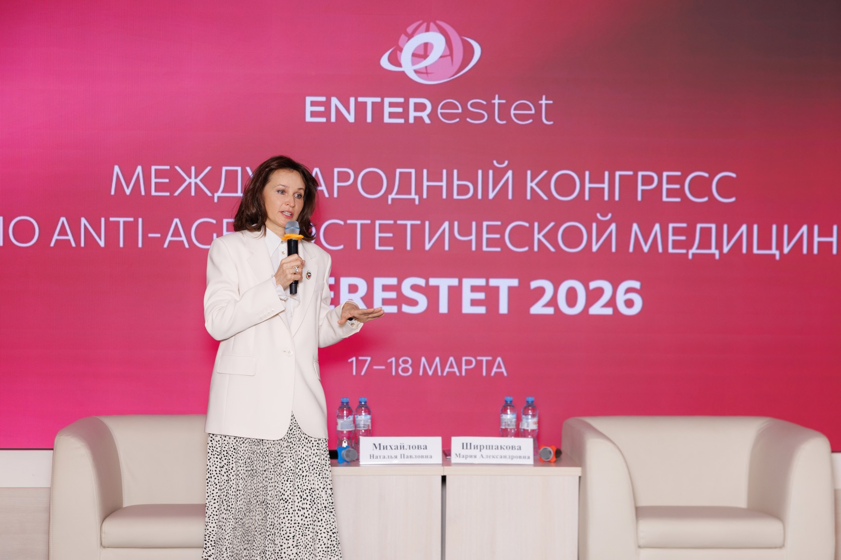 «ENTERESTET — это конференция, которая объединяет специалистов в области косметологии и дерматокосметологии — замечательных направлений, идущих бок о бок и с каждым годом все более уверенно подтверждающих свою результативность, востребованность и значимость в современной медицине. Я говорю о мощной научной базе, которая легла в основу специальности «косметология». Сейчас видно, что практически все медийные личности обращаются к косметологам. И почти всегда можно отметить качественную работу специалистов, их высокий профессионализм. Также заметно, что культура эстетических вмешательств постепенно смещается в сторону гармонии, а не карикатурности. Безусловно, встречаются случаи, вызывающие недоумение, однако в целом растет культура отношения к себе, а также культура честного, бережного и уважительного подхода врача к лицу пациента. Все это связано с тем, что уровень знаний, междисциплинарный подход и образование наших специалистов становятся все более глубокими и серьезными. И, конечно же, подтверждением этому служит данный замечательный конгресс. Уверена, что он станет платформой для плодотворных дискуссий и обмена знаниями — как практическими, так и теоретическими», — отметила Наталья Мантурова.